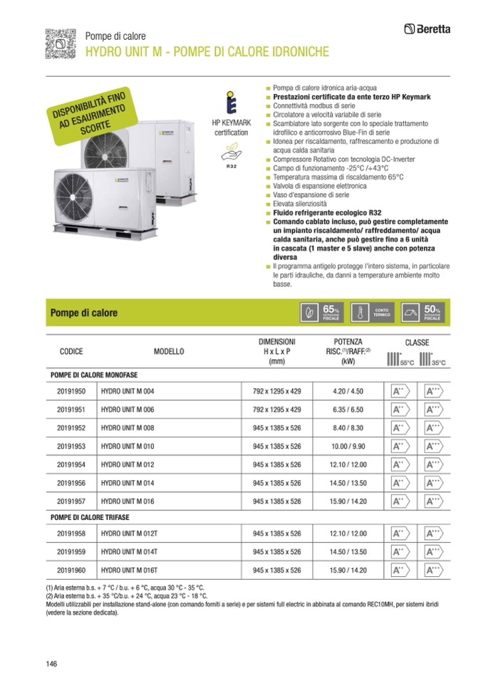 Modelli utilizzabili per installazione stand-alone (con comando forniti a serie) e per sistemi full electric in abbinata al comando REC10MH, per sistemi ibridi