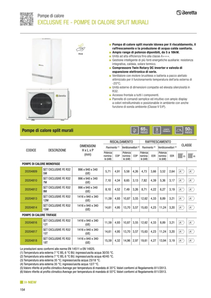(5) Valore riferito al profilo climatico Average per temperatura di mandata di 35°C. Valori conformi al Regolamento 811/2013.