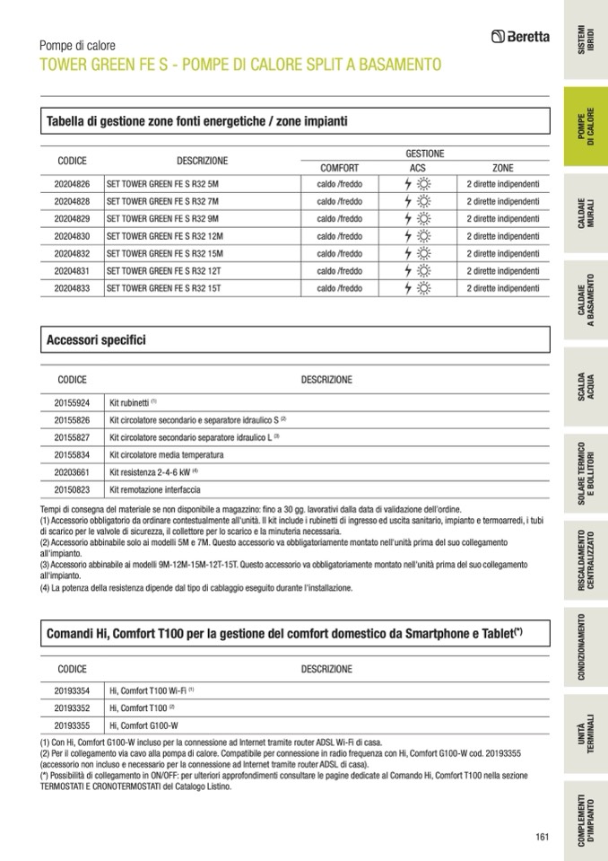 (2) Per il collegamento via cavo alla pompa di calore. Compatibile per connessione in radio frequenza con Hi, Comfort G100-W cod. 20193355