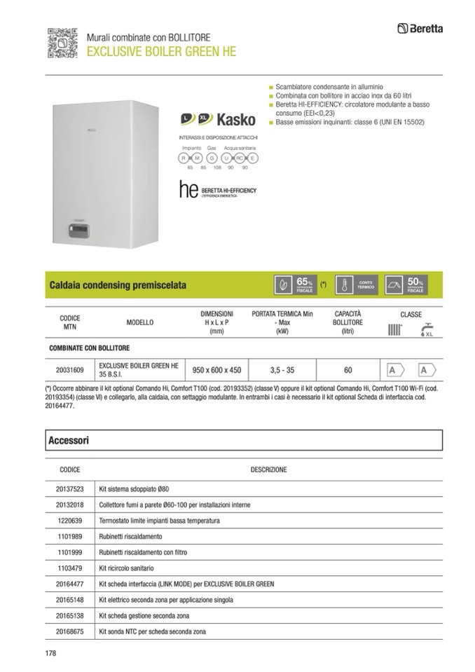 20193354) (classe VI) e collegarlo, alla caldaia, con settaggio modulante. In entrambi i casi è necessario il kit optional Scheda di interfaccia cod.