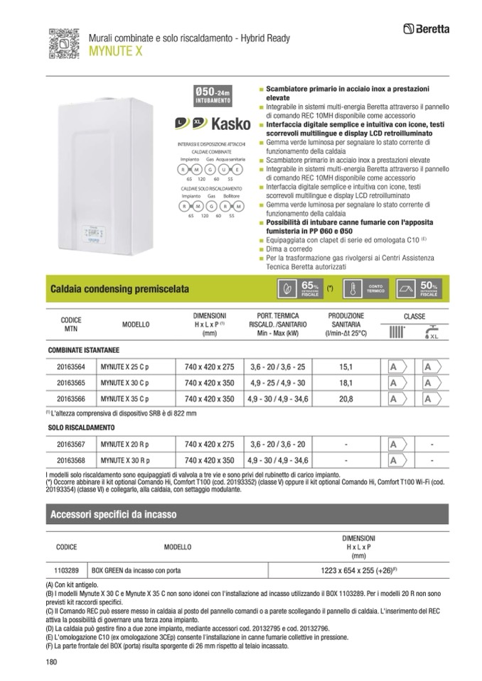 (B) I modelli Mynute X 30 C e Mynute X 35 C non sono idonei con l'installazione ad incasso utilizzando il BOX 1103289. Per i modelli 20 R non sono