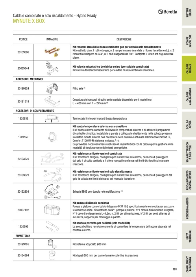 in caldaia. Sonda esterna non necessaria se la caldaia è abbinata al Comando Comfort Hi,