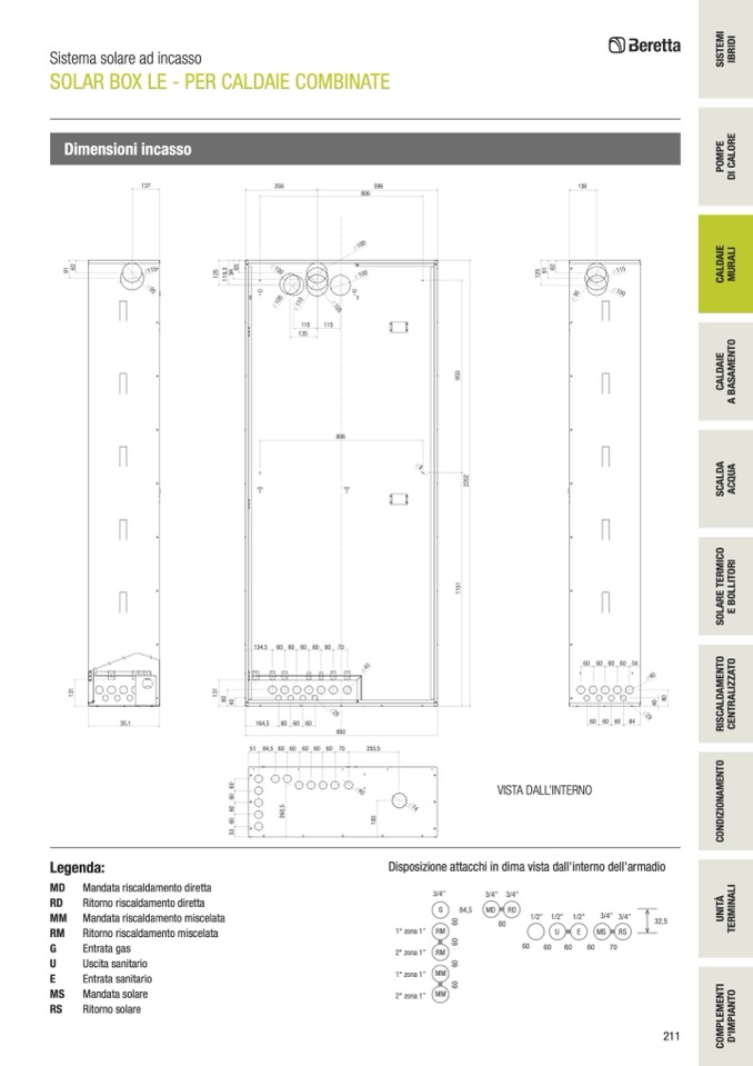 Disposizione attacchi in dima vista dall'interno dell'armadio