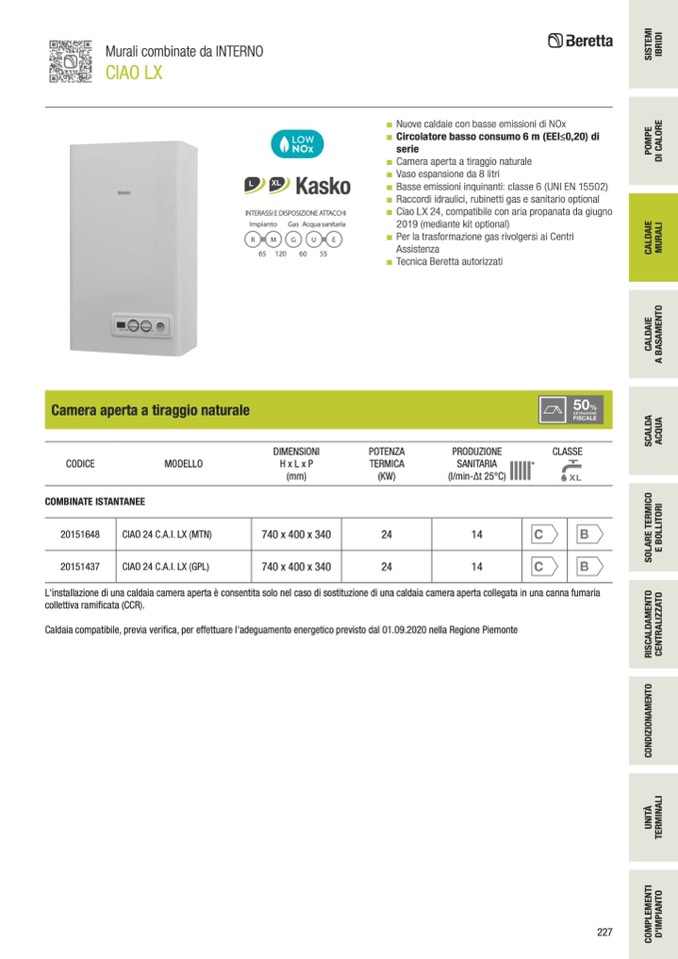 Caldaia compatibile, previa verifica, per effettuare l'adeguamento energetico previsto dal 01.09.2020 nella Regione Piemonte