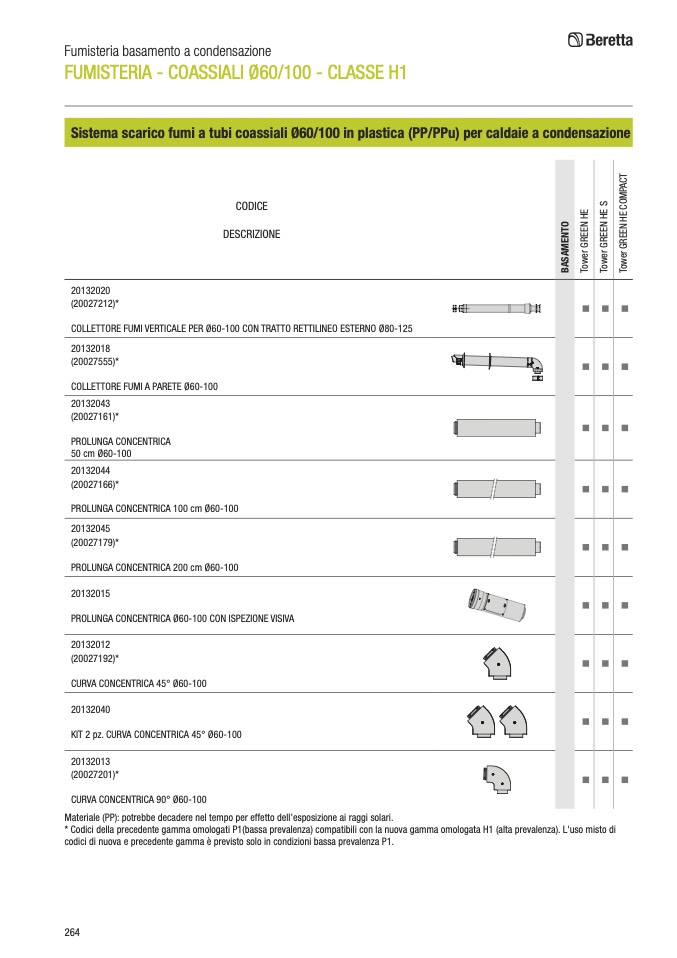 * Codici della precedente gamma omologati P1(bassa prevalenza) compatibili con la nuova gamma omologata H1 (alta prevalenza). L'uso misto di