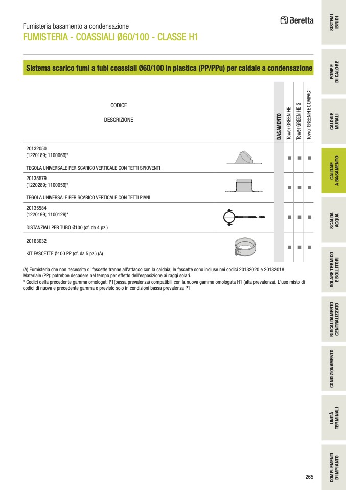 * Codici della precedente gamma omologati P1(bassa prevalenza) compatibili con la nuova gamma omologata H1 (alta prevalenza). L'uso misto di
