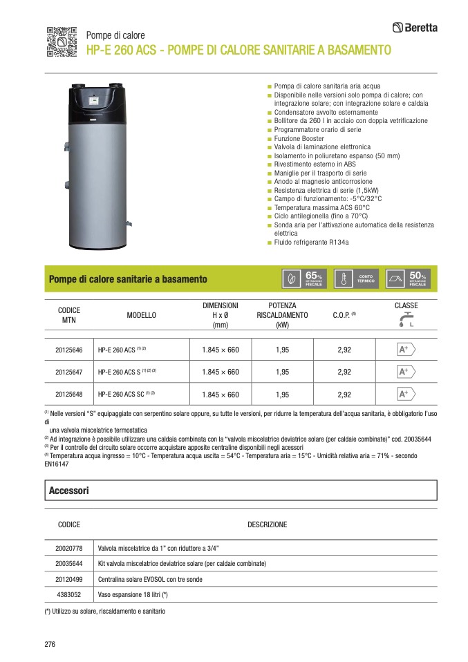 (*) Utilizzo su solare, riscaldamento e sanitario