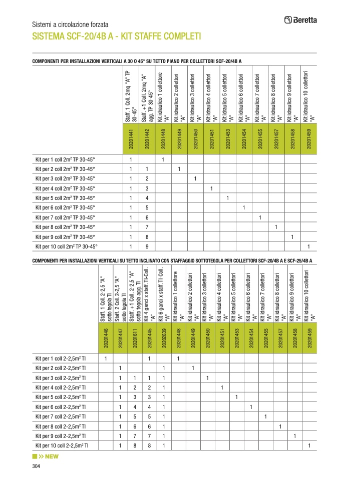 COMPONENTI PER INSTALLAZIONI VERTICALI A 30 O 45° SU TETTO PIANO PER COLLETTORI SCF-20/4B A