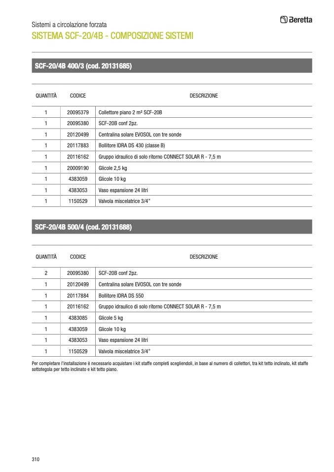 Per completare l’installazione è necessario acquistare i kit staffe completi scegliendoli, in base al numero di collettori, tra kit tetto inclinato, kit staffe