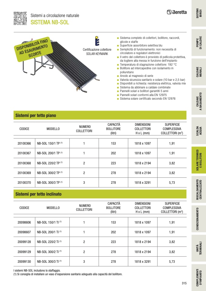 (1) Si consiglia di installare un vaso d’espansione sanitario adeguato alla capacit