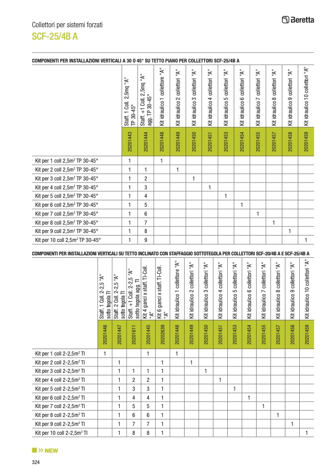 COMPONENTI PER INSTALLAZIONI VERTICALI A 30 O 45° SU TETTO PIANO PER COLLETTORI SCF-25/4B A