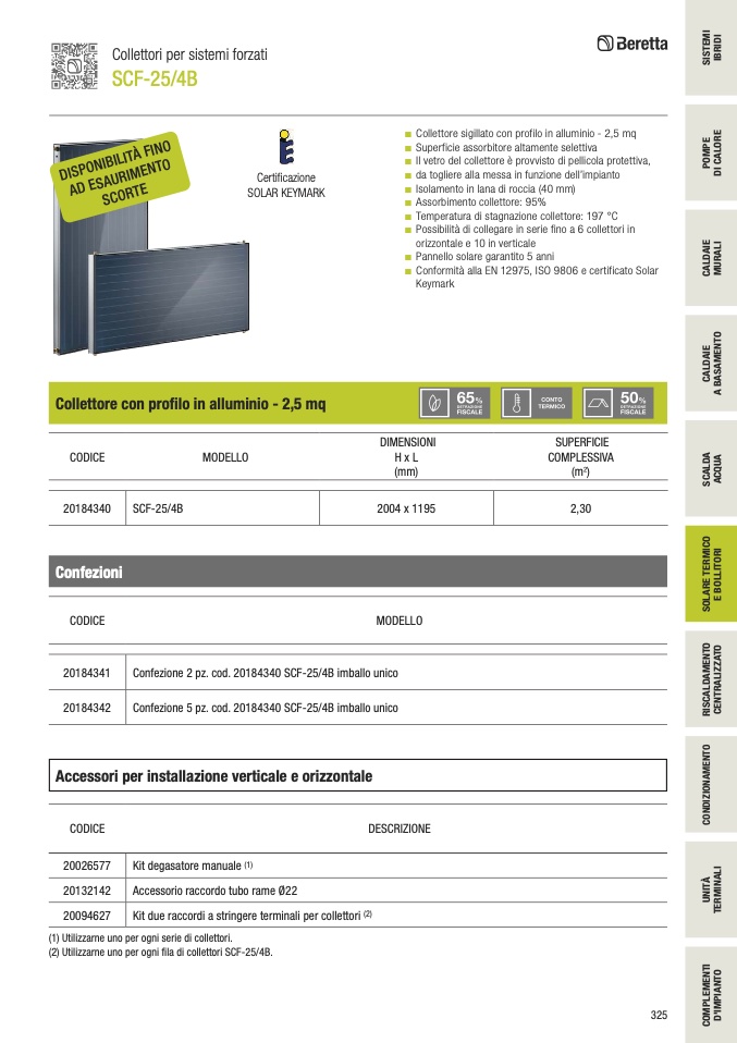 (2) Utilizzarne uno per ogni fila di collettori SCF-25/4B.