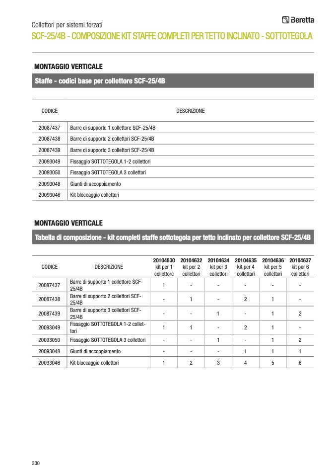 Barre di supporto 1 collettore SCF-