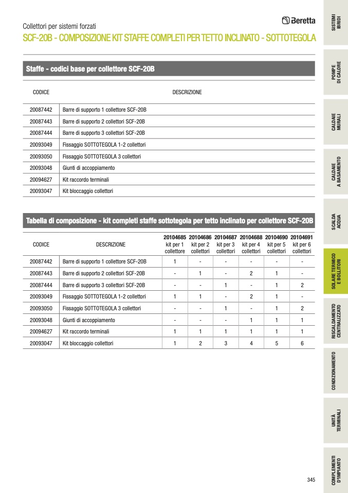 Barre di supporto 1 collettore SCF-20B
