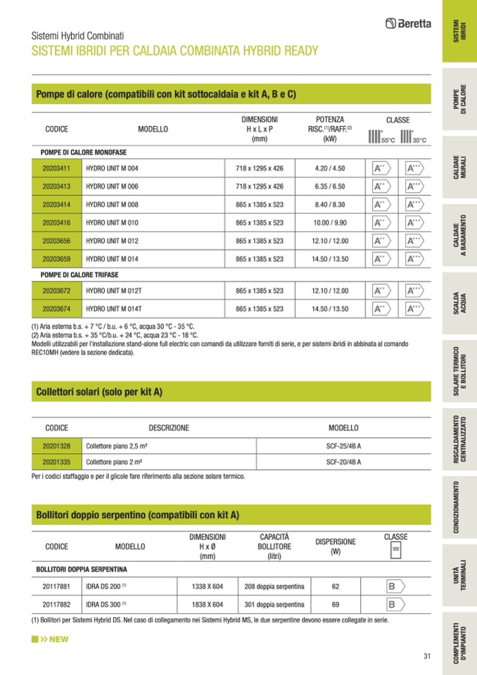 Per i codici staffaggio e per il glicole fare riferimento alla sezione solare termico.