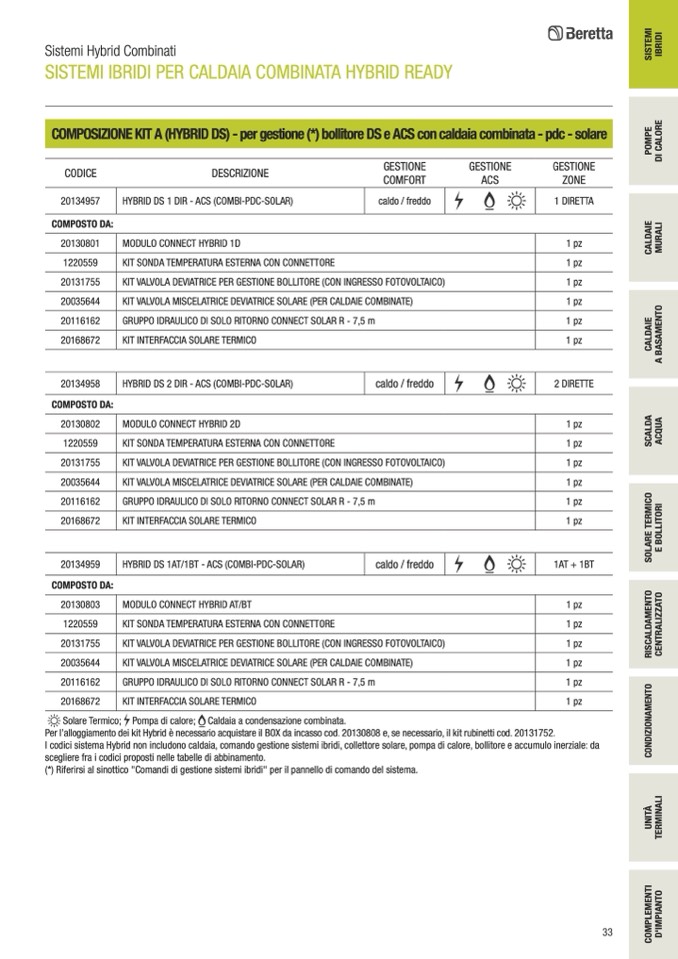 I codici sistema Hybrid non includono caldaia, comando gestione sistemi ibridi, collettore solare, pompa di
