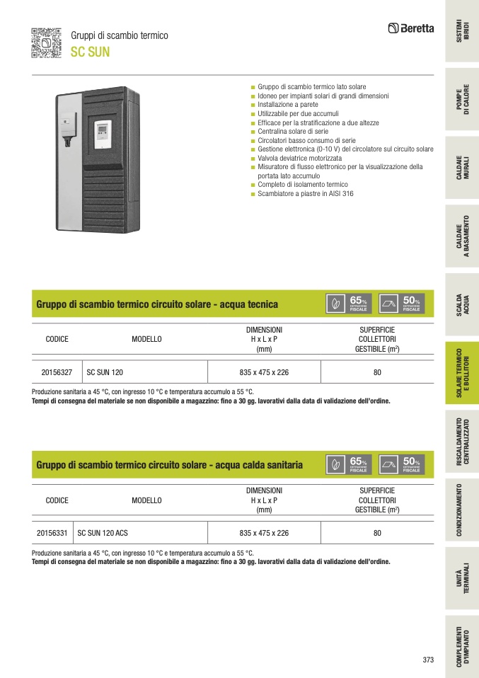 Produzione sanitaria a 45 °C, con ingresso 10 °C e temperatura accumulo a 55 °C.