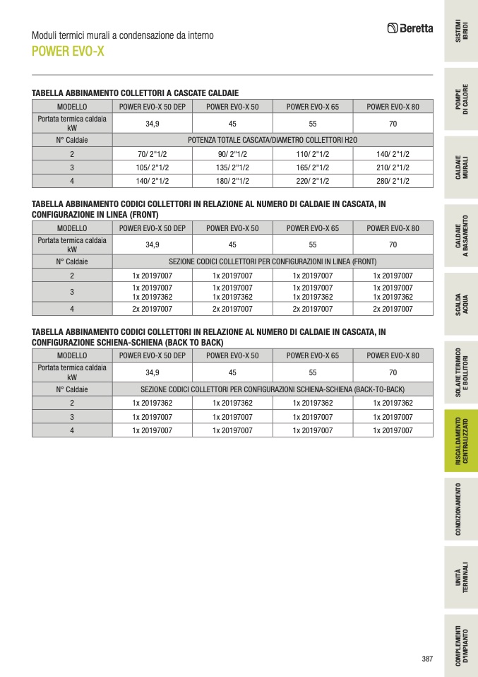 SEZIONE CODICI COLLETTORI PER CONFIGURAZIONI SCHIENA-SCHIENA (BACK-TO-BACK)