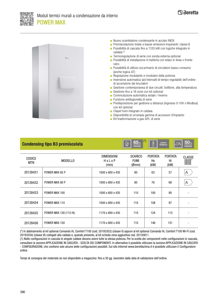 - CONFIGURAZIONI, che contiene solo alcune delle configurazioni possibili. Sul sito Internet www.berettaclima.it è possibile utilizzare il Configuratore