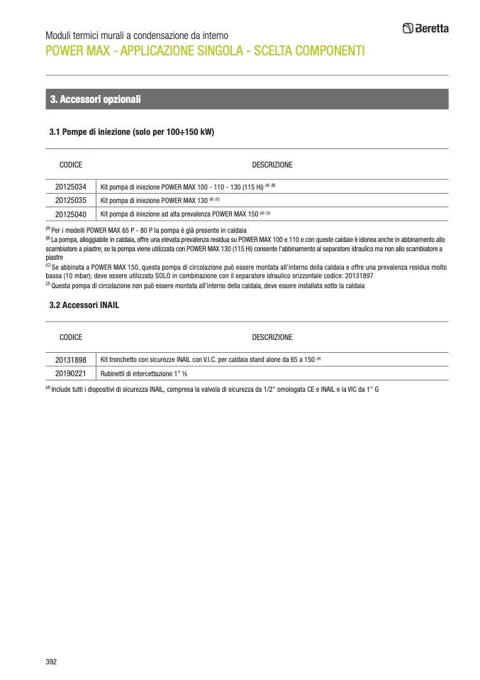 bassa (10 mbar); deve essere utilizzato SOLO in combinazione con il separatore idraulico orizzontale codice: 20131897