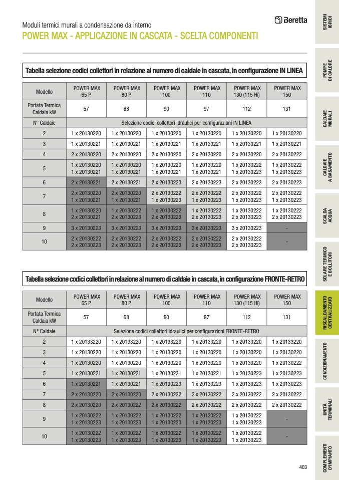 Selezione codici collettori idraulici per configurazioni FRONTE-RETRO