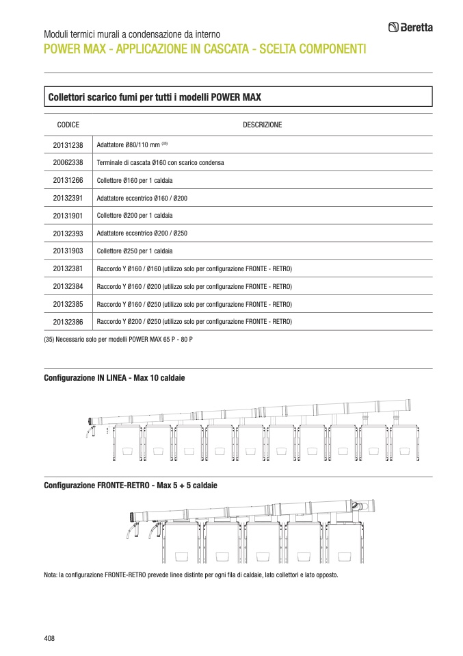Nota: la configurazione FRONTE-RETRO prevede linee distinte per ogni fila di caldaie, lato collettori e lato opposto.