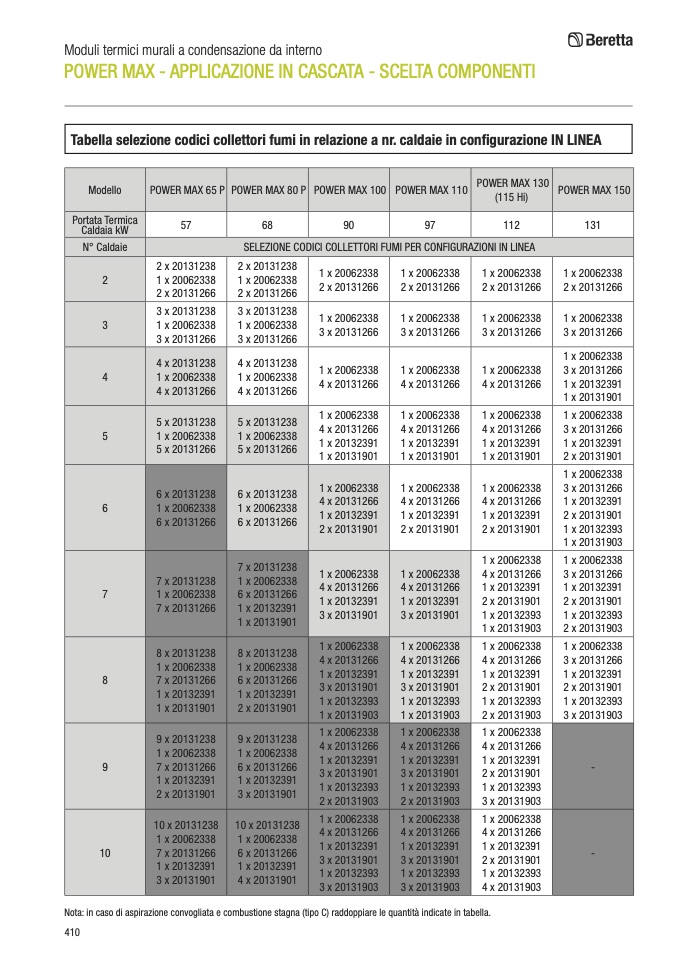 SELEZIONE CODICI COLLETTORI FUMI PER CONFIGURAZIONI IN LINEA