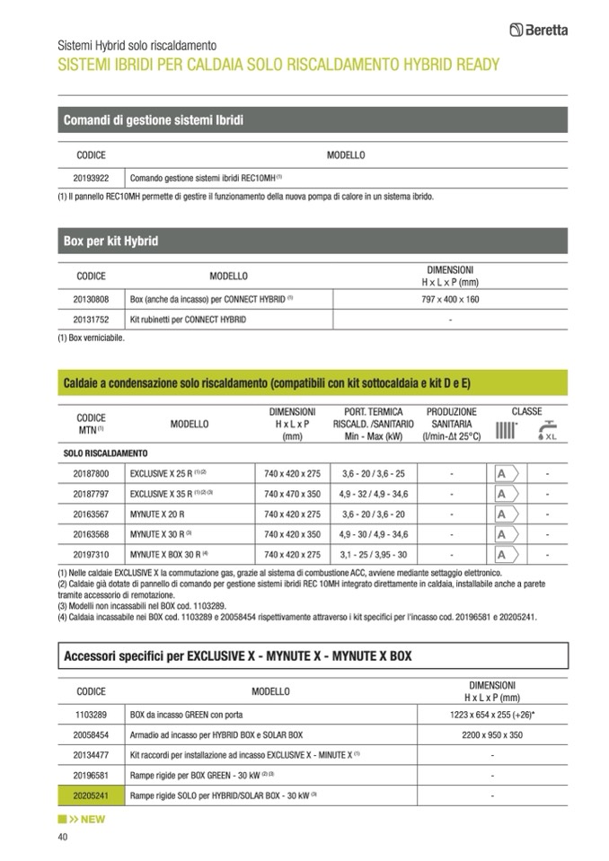 (2) Caldaie già dotate di pannello di comando per gestione sistemi ibridi REC 10MH integrato direttamente in caldaia, installabile anche a parete