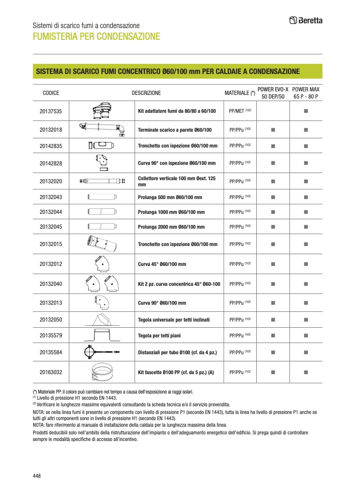 tutti gli altri componenti sono in livello di pressione H1 (secondo EN 1443).