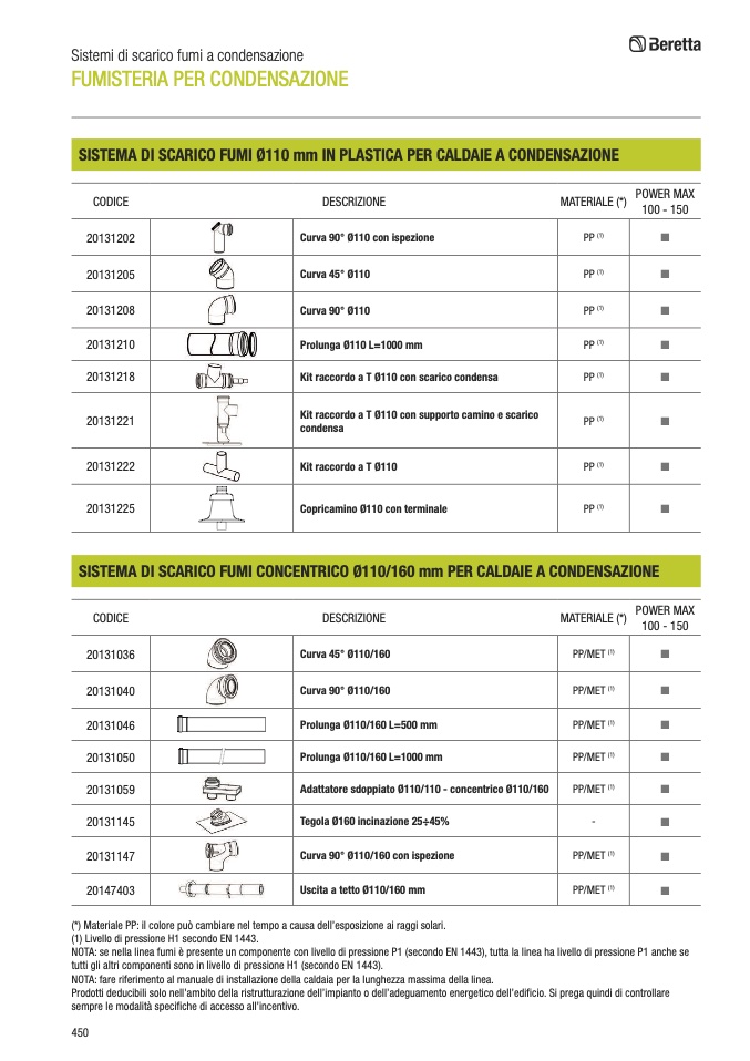 tutti gli altri componenti sono in livello di pressione H1 (secondo EN 1443).
