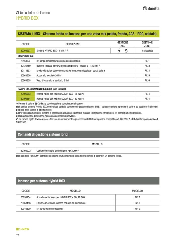 (1) ll codice sistema Hybrid BOX non include caldaia, comando di gestione sistemi ibridi, , collettore solare e pompa di calore: da scegliere fra i codici