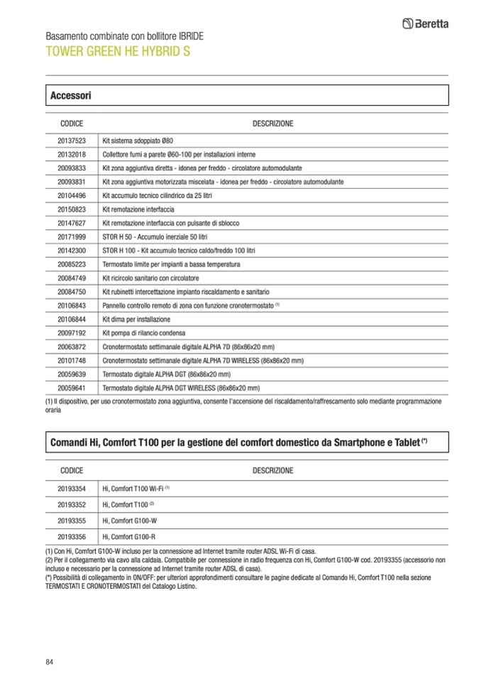 (2) Per il collegamento via cavo alla caldaia. Compatibile per connessione in radio frequenza con Hi, Comfort G100-W cod. 20193355 (accessorio non