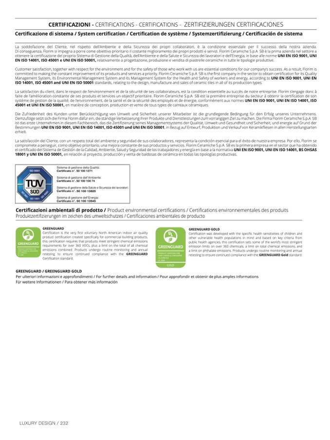 committed to making the constant improvement of its products and services a priority. Florim Ceramiche S.p.A SB is the first company in the sector to obtain certi
