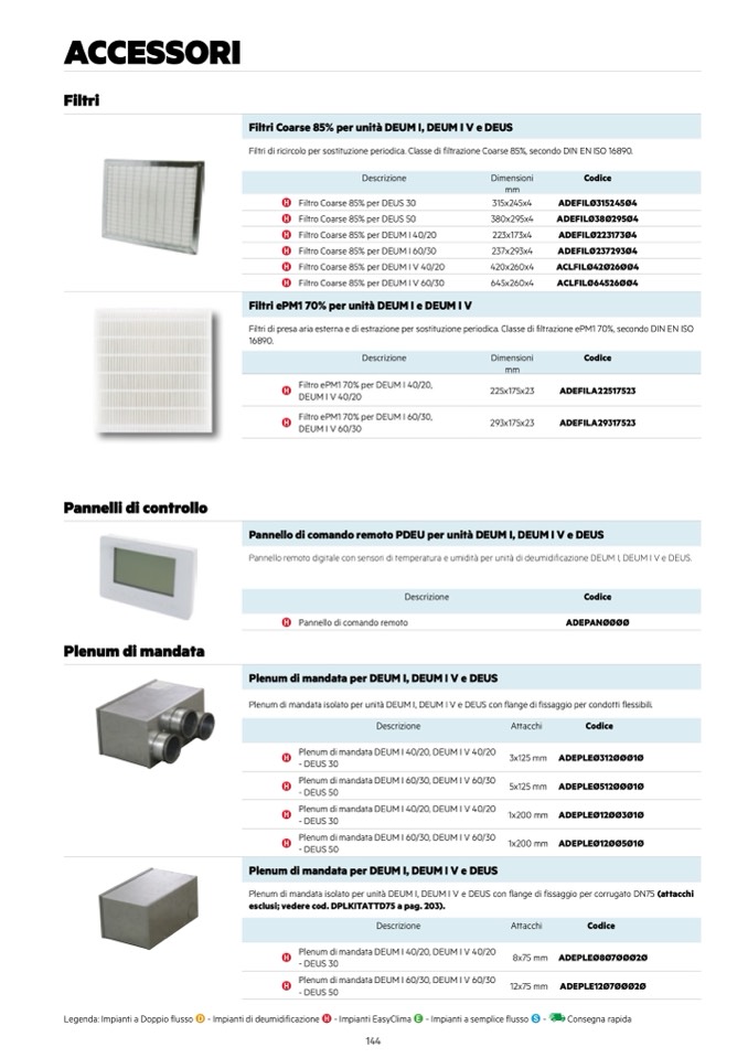 Legenda: Impianti a Doppio flusso D - Impianti di deumidificazione H - Impianti EasyClima E - Impianti a semplice flusso S -