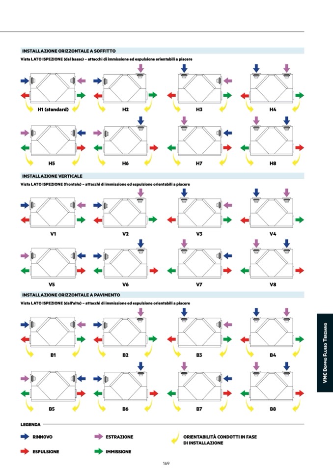 Vista LATO ISPEZIONE (dal basso) – attacchi di immissione ed espulsione orientabili a piacere