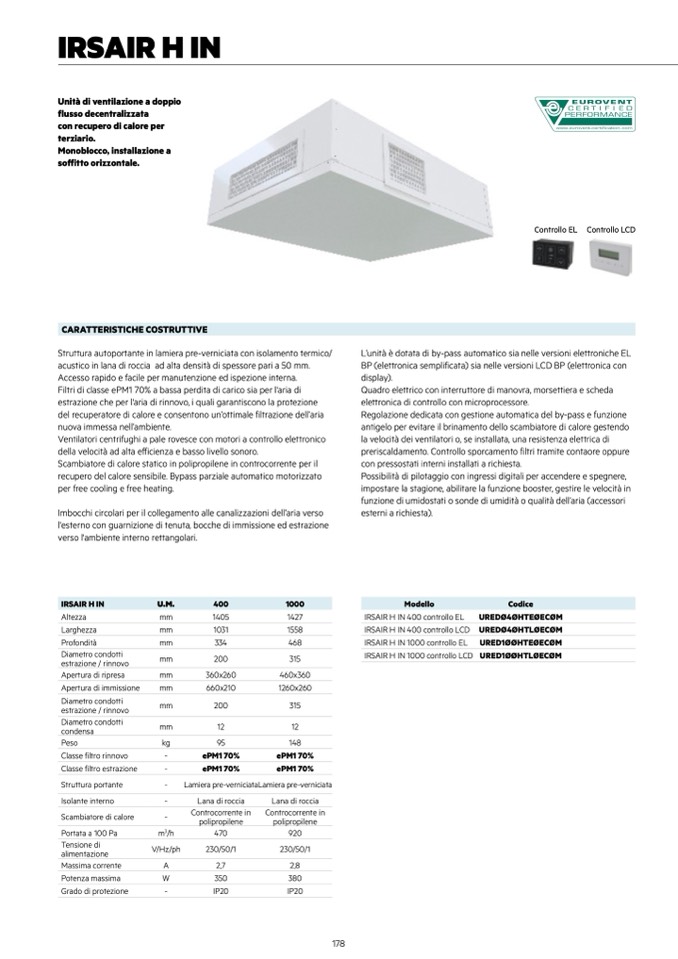 IRSAIR H IN 400 controllo EL