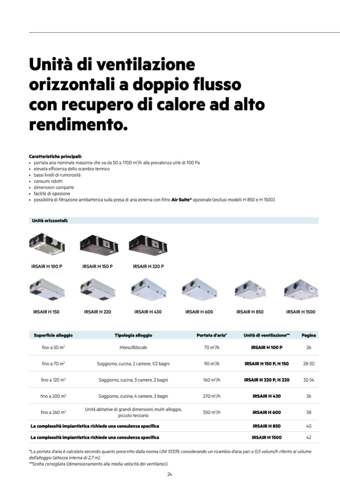 • possibilità di filtrazione antibatterica sulla presa di aria esterna con filtro Air Suite® opzionale (esclusi modelli H 850 e H 1500)