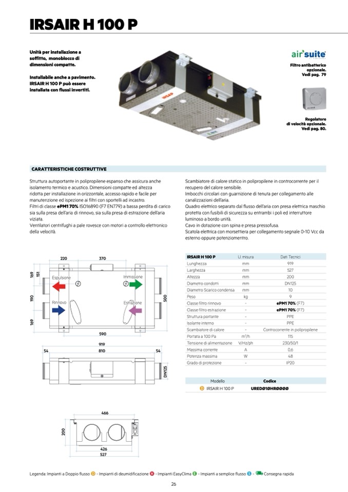Legenda: Impianti a Doppio flusso D - Impianti di deumidificazione H - Impianti EasyClima E - Impianti a semplice flusso S -