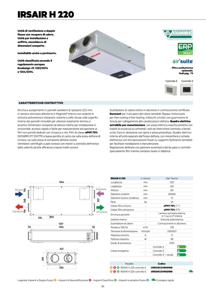 Legenda: Impianti a Doppio flusso D - Impianti di deumidificazione H - Impianti EasyClima E - Impianti a semplice flusso S -