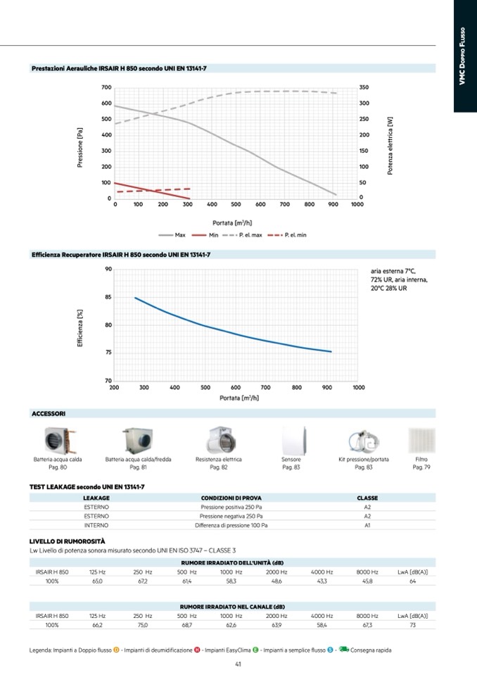 Prestazioni Aerauliche IRSAIR H 850 secondo UNI EN 13141-7