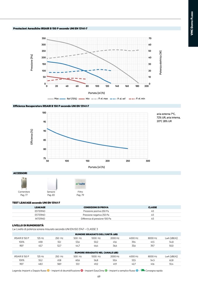 Prestazioni Aerauliche IRSAIR B 150 P secondo UNI EN 13141-7