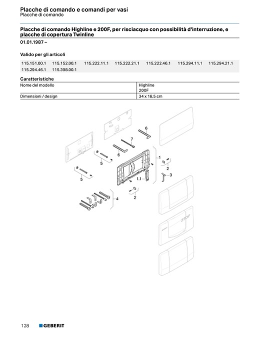 Placche di comando Highline e 200F, per risciacquo con possibilità d'interruzione, e