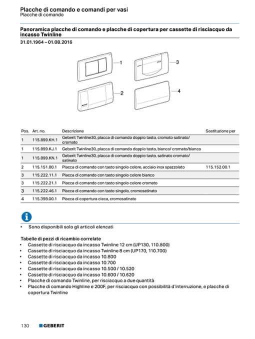 PKlapcpchae di comando Highline e 200F, per risciacquo con possibilità d‘interruzione, e placche di