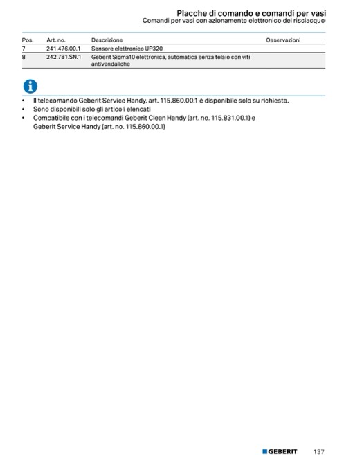• Compatibile con i telecomandi Geberit Clean Handy (art. no. 115.831.00.1) e