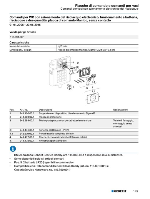 • Compatibile con i telecomandi Geberit Clean Handy (art. no. 115.831.00.1) e