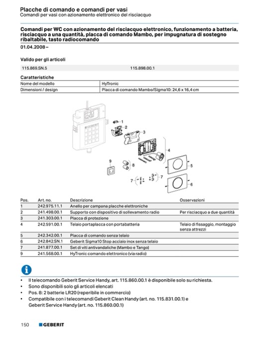 Il telecomando Geberit Service Handy, art. 115.860.00.1 è disponibile solo su richiesta.