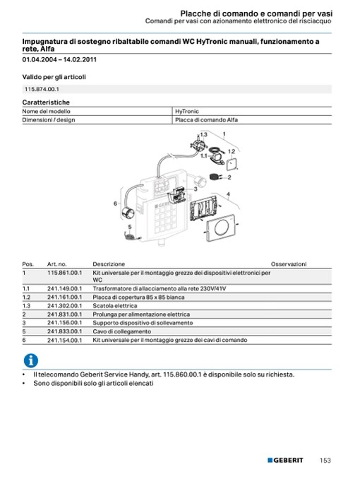 Il telecomando Geberit Service Handy, art. 115.860.00.1 è disponibile solo su richiesta.