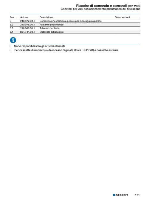 • Per cassette di risciacquo da incasso Sigma8, Unica+ (UP720) e cassette esterne