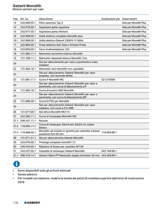 Ssceritziponeer allacciamento Geberit Monolith per vaso Oasservazioni
