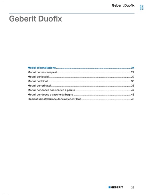 Moduli per bidet . . . . . . . . . . . . . . . . . . . . . . . . . . . . . . . . . . . . . . . . . . . . . . . . . . . . . . . . . . . . . . . . . . . . . . . 35